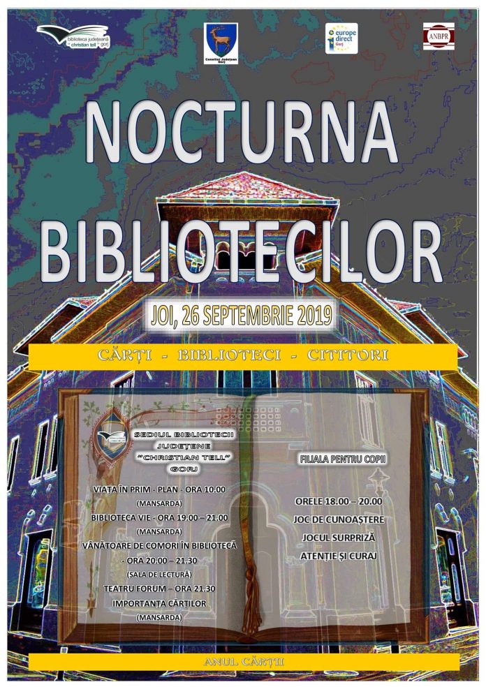„Joi, 26 septembrie, vă așteptăm la o seară memorabilă petrecută la Biblioteca Județeană ”Christian Tell” Gorj! (Sediul Central și Filiala pentru Copii)”, a anunțat conducerea Bibliotecii Județene „Christian Tell” Gorj.