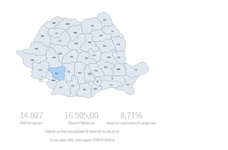 Puţin peste 14.000 de locuinţe din judeţul Gorj sunt asigurate împotriva catastrofelor naturale. Asta înseamnă că aproape 9% dintre casele şi apartamentele gorjenilor au poliţe active de asigurare obligatorie a locuinţei.