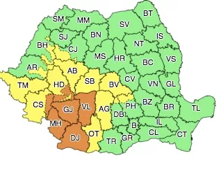 Meteorologii au emis luni o avertizare meteorologică Cod portocaliu de ploi torențiale, începând cu ora 10.00, până mâine la aceeași oră. Zonele afectate sunt județele Mehedinți, Gorj, Vâlcea și Dolj și în zona de munte a județelor Caraș-Severin, Hunedoara și Argeș.