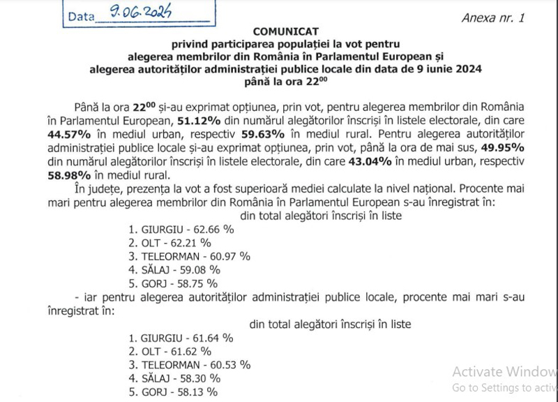 Prezențe mai mari decât în Gorj s-au înregistrat în județele Giurgiu, Olt, Teleorman și Sălaj.