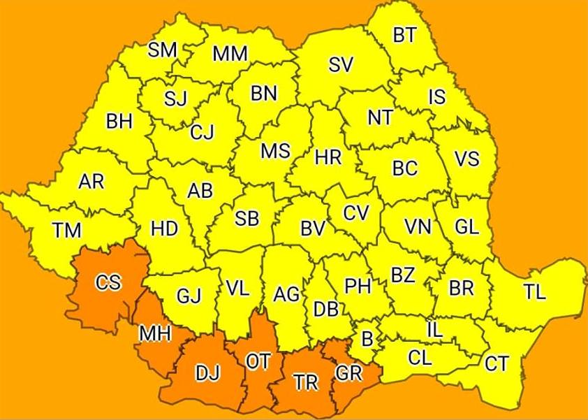 În noaptea de marți spre miercuri (23/24 octombrie), în Banat, Crișana, Maramureș și Transilvania vântul va avea intensificări cu viteze de 55…60 km/h, iar pentru intervale scurte de timp vor fi rafale de peste 65…70 km/h. În aceste regiuni, va ploua pe arii relativ extinse, iar cantitățile de apă vor atinge local 15 l/mp și izolat, mai ales la deal, 25 – 30 l/mp. În cursul zilei de miercuri (24 octombrie), vântul se va intensifica treptat în toate regiunile, cu viteze în general de 55 – 70 km/h, mai mari în sudul extrem al țării.