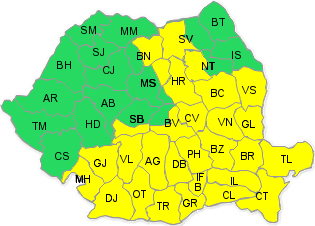 În zonele atenţionate, temporar vântul va avea intensificări cu viteze de 55…65 km/h, iar la munte rafalele vor depăşi 70 km/h.