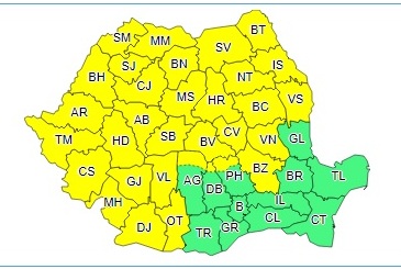 Administrația Națională de Meteorologie a emis o atenţionare de Cod Galben de instabilitate atmosferică accentuată, cantități de apă însemnate, pentru intervalul 22 iunie, între orele 6.00 – 23.00, pentru mai multe judeţe din ţară. Pe parcursul zilei de vineri (22 iunie) vor fi averse torențiale, vijelii, descărcări electrice și izolat grindină la început în Banat, Crișana și Maramureș, apoi în Transilvania, Oltenia, cea mai mare parte a Moldovei și în nordul Munteniei.
