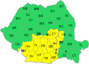 În intervalul 19 aprilie, ora 22.00 – 20 aprilie, ora 22.00, în regiunile sudice, precum şi în zona Carpaţilor Meridionali şi de Curbură, vor fi perioade cu instabilitate atmosferică accentuată. În Oltenia, mare parte din Muntenia şi sudul Transilvaniei vor fi ploi, mai ales averse, ce vor avea şi caracter torenţial, însoţite de descărcări electrice, intensificări ale vântului şi izolat de grindină. Cantităţile de apă vor depăşi local 25 l/mp şi izolat 40…50 l/mp. Viteza vântului va depăşi 60…65 km/h, mai ales în Oltenia, iar la munte va sufla tare, cu peste 70…80 km/h.