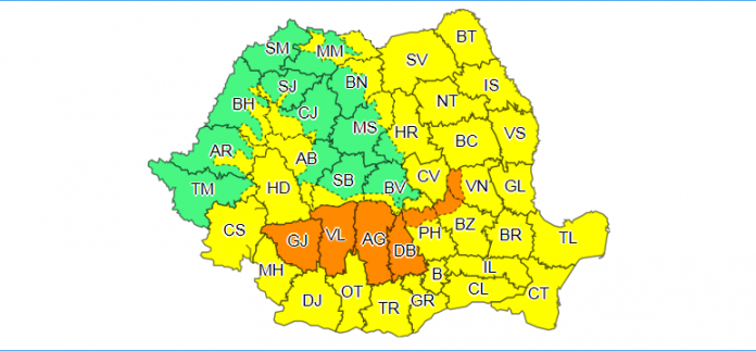 Notă: manifestări de instabilitate atmosferică accentuată vor fi pe alocuri și în celelalte județe din sudul și estul țării.