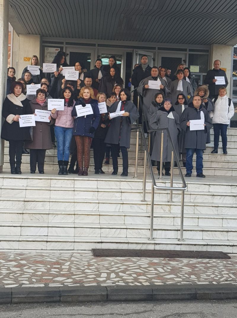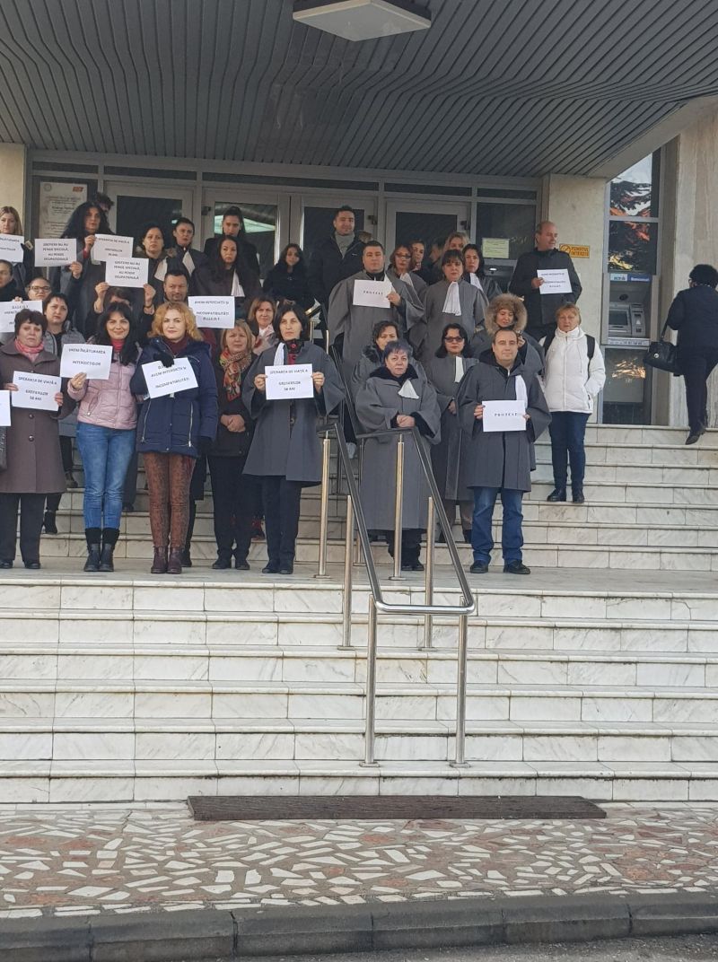 Aproximativ 40 de grefieri au continuat ieri, protestul, pe scările Palatului Justiției, în Târgu-Jiu. Aceștia își desfășoară activitatea la Tribunalul Gorj, DIICOT și la parchetele din Târgu-Jiu și sunt nemulţumiţi de intenţia Parlamentului de a elimina pensiile de serviciu. ,,Protestăm împotriva deciziei luate de către Comisia de muncă și protecție socială prin care s-a aprobat abrogarea așa zisei <pensii speciale> care de fapt este o pensie de serviciu/ocupațională și care urmează să fie votată în plenul Camerei Deputaților – for decizional”, a declarat Petre Bivolariu, grefier în cadrul Tribunalului Gorj. Miercuri, procurorii Parchetului de pe lângă Tribunalul Gorj au anunțat că susțin formele de protest inițiate de personalul auxiliar de specialitate din cadrul instanțelor judecătorești și parchetelor de pe lângă acestea.