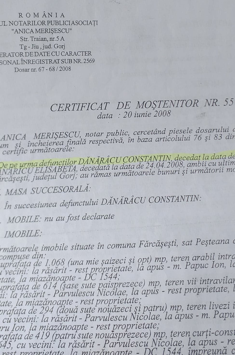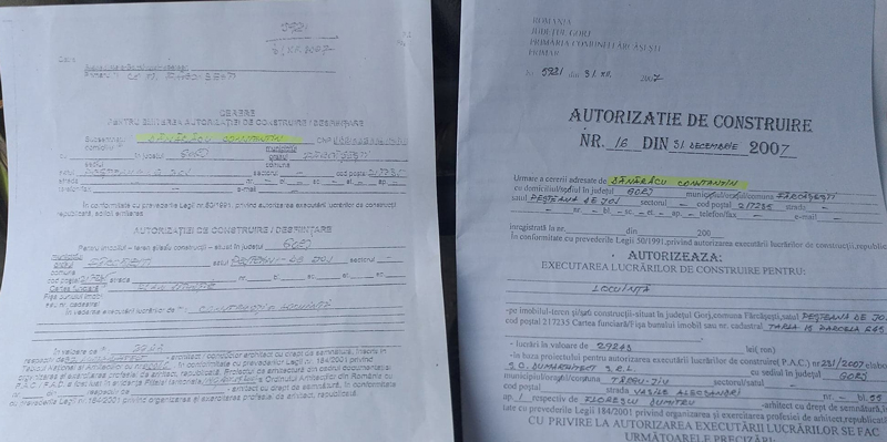 Mai exact, primarul de atunci, Constantin Pârvulescu a eliberat o autorizație de construcție pentru Dănărâcu Constantin, decedat în 28 septembrie 2007.