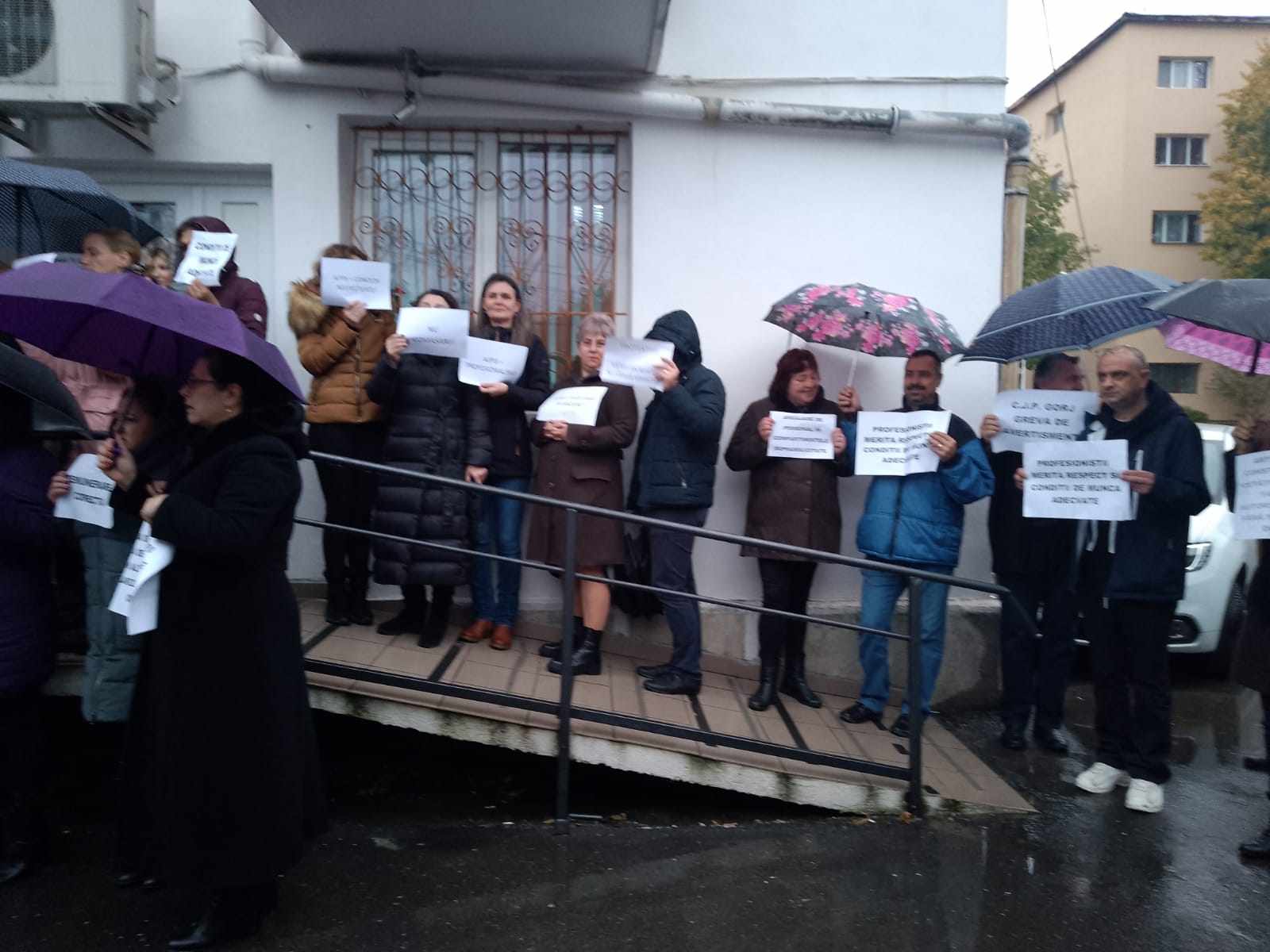 La această oră, salariații Casei Județene de Pensii, precum și cei ai Agenției de Prestații Sociale Gorj organizează o grevă de avertisment, în fata instituției. Funcționarii publici au întrerupt activitatea până la ora 10:00. Revendicările acestora sunt legate de personalul insuficient din cele două instituții comparativ cu volumul de muncă, dar, în principal, inechitățile salariale din sistem, angajații CJP Gorj și AJPIS Gorj dorind o creștere a salariilor și aducerea acestora la nivelul altor categorii ocupaționale.