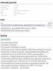 Procesul a fost pierdut de CEO la Tribunalul Gorj. CEO a făcut apel. La Curtea de Apel Craiova, instanță a admis astăzi apelul CEO și a pus la plată sindicatul lui Bunoaica. acesta are de achitat companiei peste 36.000 de lei. După aflarea sentinței, Bunoaica a declarat că va sesiza CSM și CEDO.