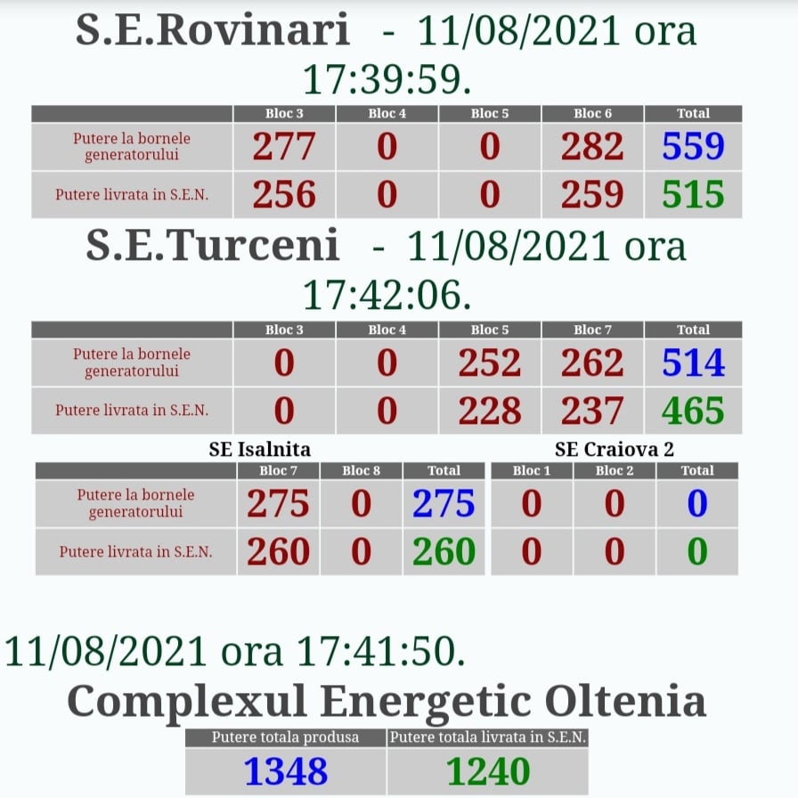 Cea mai eficientă termocentrală a CEO funcționează, de săptămâna trecută, numai cu două grupuri, 3 și 6, în loc de trei blocuri cum a funcționat ani la rând. Și asta, pentru că depozitele de cărbune sunt goale. Vicepreședintele Sindicatului Energia Rovinari, Manu Tomescu, a declarat că nu numai lipsa cărbunelui este motivul pentru care Termocentrala Rovinari nu mai funcționează așa cum trebuie, ci și marele deficit de personal.Termocentrala Turceni funcționează tot cu două grupuri iar cea de la Ișalnița, cu un singur grup energetic.
