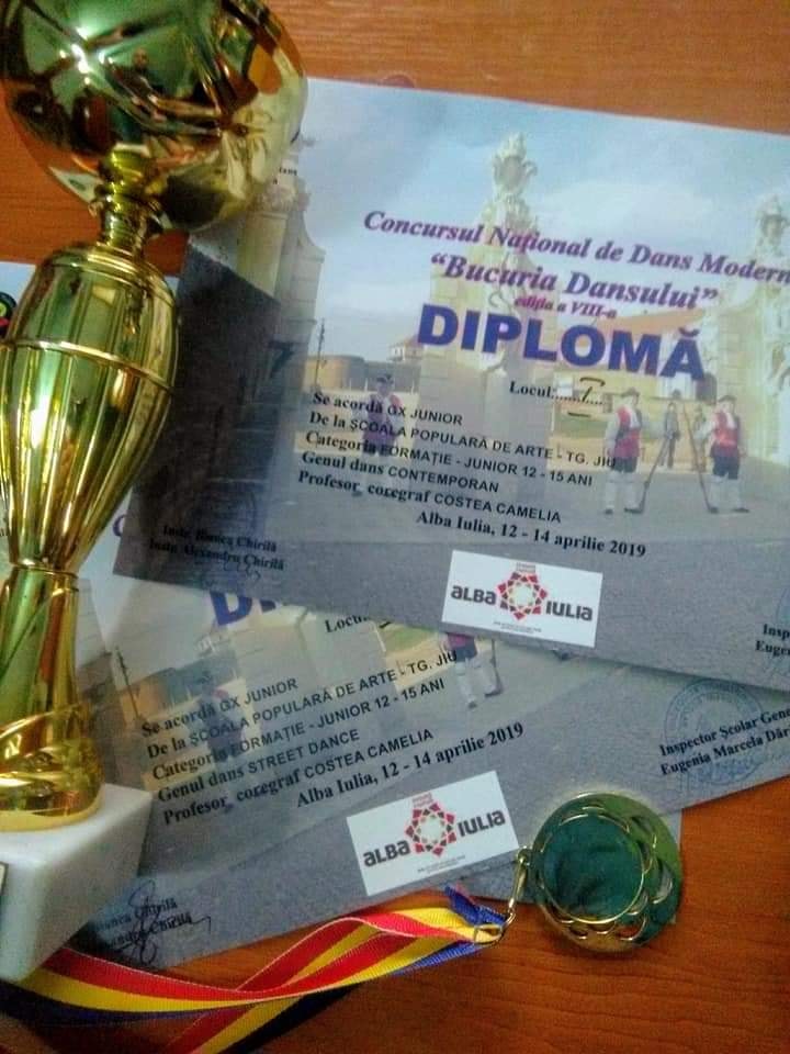 Grupul de dans modern GX Junior, din cadrul Școlii Populare de Artă Târgu-Jiu, coordonat de prof. Camelia Costea, s-a întors acasă cu două premii: Premiul I, genul dans contemporan, categoria 12-15 ani; Premiul III, genul street dance, categoria 12-15 ani.
