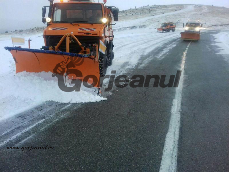 Prognozele meteorologilor s-au confirmat. De ieri dimineață, ninge în zona montană, reprezentanții Secției Drumuri Naționale (SDN) Târgu-Jiu acționând pe DN 67 C, între Novaci și Rânca, cu autoutilaje și material antiderapant.