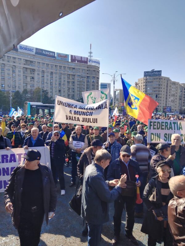 Mii de pensionari și salariați din mai toate domeniile de activitate protestează, astăzi, vineri 25 octombrie, de Ziua Armatei, în Piața Victoriei, din București. Premierul Marcel Ciolacu i-a chemat la discuții la Guvern. Acolo sunt CFR-iști, silvicultori, polițiști, mineri de la Federația Națională a Muncii din Gorj și Valea Jiului.