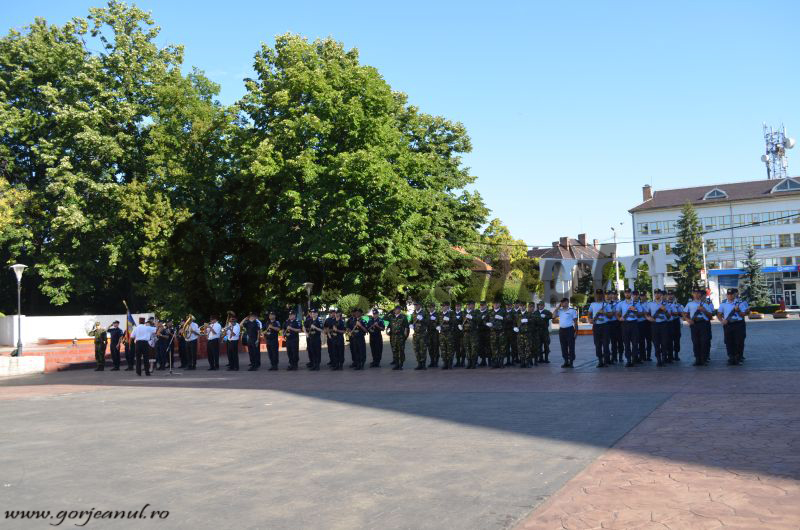 Gheorghe Nichifor, vicepreşedintele Consiliului Județean Gorj. A urmat intonarea Imnului Naţional al României, de către Yasmine Polacek și Fanfara Armonia, iar la final a avut loc Defilarea Gărzii de Onoare. Versurile imnului “Deşteaptă-te, române!” îi aparţin poetului Andrei Mureşanu şi au fost puse pe note de Anton Pann.