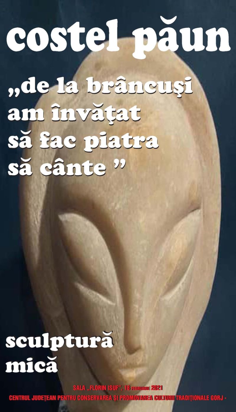 Primul eveniment este organizat în parteneriat cu Teatrul Dramatic ,,Elvira Godeanu” Târgu-Jiu și va oferi celor prezenți ocazia de a asista la o punere în scenă a poveștii de dragoste dintre marele sculptor și Maria Tănase. ,,Centrul Județean pentru Conservarea și Promovarea Culturii Tradiționale Gorj și Teatrul Dramatic Elvira Godeanu din municipiul Târgu-Jiu organizează un altfel de eveniment pentru a marca cei 145 de ani de la nașterea lui Constantin Brâncuși. Evenimentul va avea loc joi, 18 februarie 2021, cu o zi înainte de Ziua Națională Brâncuși, și va arăta frumoasa, dar scurta poveste de dragoste dintre marele sculptor român și Maria Tănase. Sunt puțini cei care cunosc impresionanta poveste de dragoste dintre cei doi, de aceea este bine să o punem în valoare mai bine. Așadar joi, 18 februarie 2021, la sala ,,Florin Isuf”, începând cu ora 11.00, Gia Enache și Ion Alexandrescu, actori ai Teatrului Dramatic ,,Elvira Godeanu” dau viață acestei povești de dragoste”, a anunțat Daniela Gapșea, purtătorul de cuvânt al CJCPCT Gorj. Împlinirea a 145 de ani de la nașterea lui Constantin Brâncuși va fi marcată la CJCPCT Gorj și printr-o expoziție de sculptură mică semnată de Costel Păun, dar și printr-o expoziție de carte. ,,Costel Păun a organizat peste 50 de expoziţii în ţară şi în străinătate. A devenit membru al Uniunii Artiştilor Plastici – filiala Alexandria din anul 2013. Costel Păun este singurul sculptor din România care lucrează, printr-o tehnică specială, în piatră de râu. Piatra de râu are o duritate ieșită din comun, așa că e foarte greu să o șlefuiești și să o transformi în operă de artă. Operele pe care Costel Păun le construiește amintesc în mare măsură de arta lui Constantin Brâncuși. Vor fi expuse în sala ,,Florin Isuf” a Centrului Județean pentru Conservarea și Promovarea Culturii Tradiționale Gorj 18 lucrări ale autorului, o parte dintre ele constituindu-se într-un omagiu adus lui Constantin Brâncuși. Vă așteptăm să vedeți forma prelucrată a pietrei de râu adusă la rang de artă. Expoziția de carte ,,Constantin Brâncuși” este partea a treia a ceea ce vă propunem joi, 18 februarie 2021, începând cu ora 11.00. Constantin Brâncuși, părintele sculpturii moderne, cum a fost denumit prima dată de America, este considerat unul dintre cei mai mari sculptori ai lumii, iar ziua nașterii sale este sărbătorită în toată lumea și înscrisă în calendarul cultural universal. Curatorul expoziției Teodor Dădălău a amenajat o expoziție cu cărți și albume cu această tematică, unde puteți afla mai multe amănunte despre viața și opera lui Constantin Brâncuși. O expoziție din inimă pentru sculptorul esenței românești, Constantin cel Mare de la Hobița”, a mai anunțat purtătorul de cuvânt al CJCPCT Gorj.