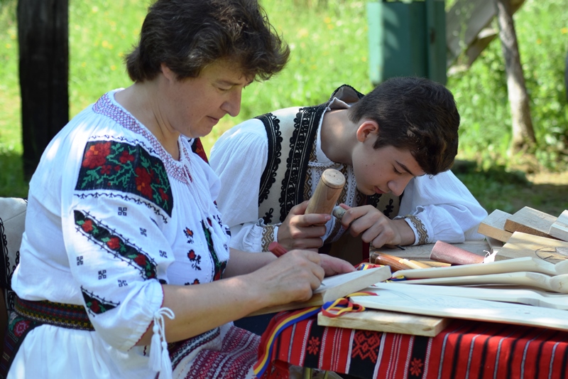 Meșterii populari: Gheorghe Valentina- țesături, Vasile Adriana – Pictură, Ungureanu Daciana-artă decorativă, Coconu Georgiana Alina-iconărit tradițional, Efemie Sabina – cusături, țesături, Mischiu Rodica Daniela-arta lemnului, Dinoiu Mioara- împletituri, cusături, Miute Valerica-icoane pe sticlă, Coneru Dumitru- olărit, Drăghescu Claudia- cusături, Modroagă Vasile- linguri de lemn, Sârbu Filomela-covoare, Rotaru Nicolae- simbolistică, Arapu Liliana– țesătoare, au fost înconjurați de micii participanți pentru a vedea frumusețea produselor create cu talent și pasiune.