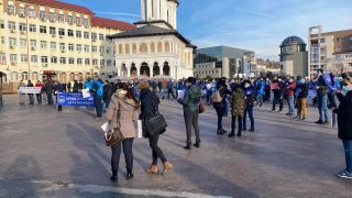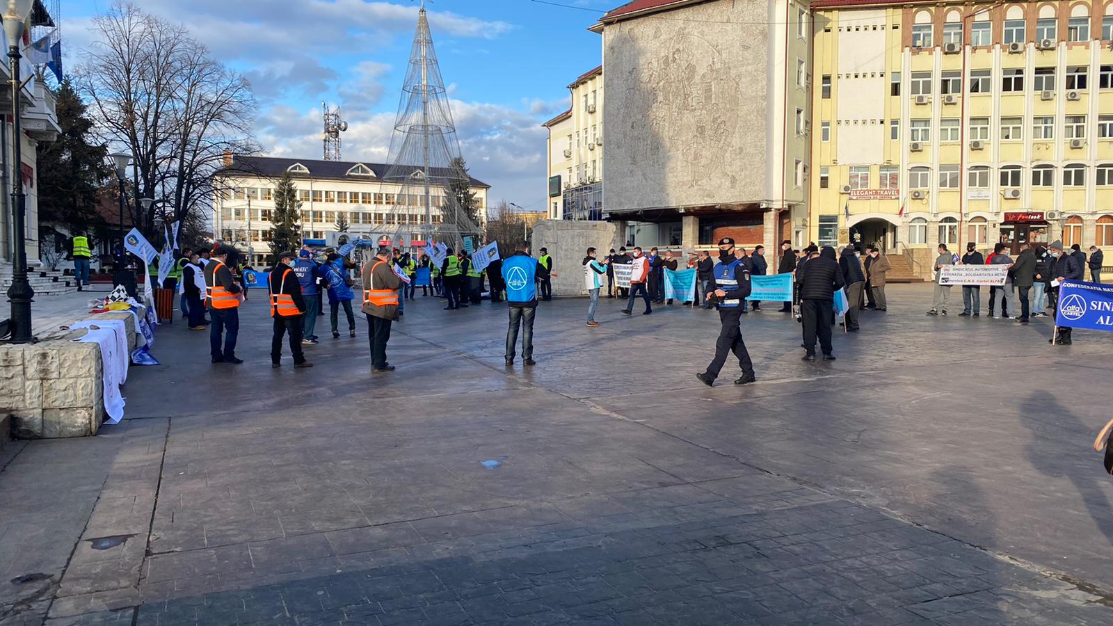 Un adevărat miting este în desfășurare la acest moment în Piața Prefecturii din Târgu Jiu. În jur de 100 de membrii din Cartel Alfa protestează în legătură cu salariile din industria minieră, dar și cele ale salariaților ELCFU.