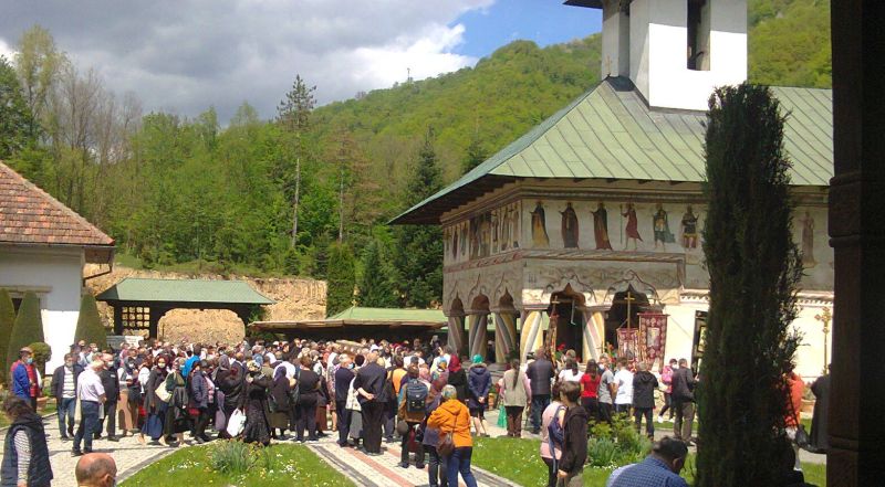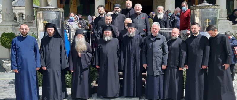 Cu binecuvântarea ÎPS Părinte, dr. Irineu, Arhiepiscopul Craiovei şi Mitropolitul Olteniei, vineri, 7 mai 2021, în ziua Hramului «Izvorul Tămăduirii» a fost prăznuit şi Sfântul Cuv. Irodion, supranumit şi «Luceafărul» de la Lainici, Sfânta Liturghie fiind oficiată în Altarul de vară de către un sobor ales de călugări şi preoţi ai Catedralei Mitropolitane din Craiova şi ai sfântului aşezământ monahal. Din alesul sobor au făcut parte şi doi oaspeţi din Republica Moldova, Preacuviosul Părinte Arhimandrit Paisie Cecan, Stareţul Mănăstirii «Noul Neamţ», Chiţcani (Tiraspol), şi fratele său de trup şi de credinţă dreptmăritoare, Onufrie Cecan, în prezenţa a câteva sute de credincioşi care au pregustat una dintre cele mai frumoase slujbe săvârşite în acest sfânt lăcaş monahal, în rândul cărora am remarcat oameni de cultură şi chiar personalităţi de la nivel judeţean şi naţional, printre care s-a aflat familia domnului Constantin Avram, publicist de mare valoare, împreună cu doamna Gheorghiţa Avram şi cu domnul Irinel Avram. La slujba liturgică au cântat membrii Corului Catedralei Mitropolitane «Sf. Mare Mucenic Dimitrie» din Craiova dirijat de către prof. dr. Victor Şapcă, iar asistenţa tehnică a fost asigurată de către domnul Cosmin Ionuţ Stanciu, de la Mitropolia Olteniei. La sfârşitul oficierii slujbei Sfintei Liturghii a fost săvârşită Sfinţirea Aghiasmei şi s-a efectuat procesiunea de purtare a sfintelor moaşte ale Sf. Irodion împrejurul celor două biserici ale mănăstirii.