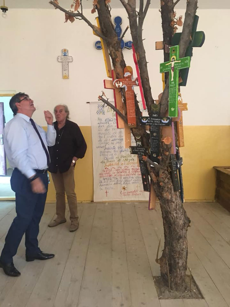 Cea mai veche cruce expusă în muzeul de la Măceşu este una tip troiţă, adusă din comuna Vladimir și are peste 140 de ani. Pe 13 septembrie 2013 a fost inaugurată secţia interioară a Muzeului Crucilor, de la Măceșu, care adăposteşte numeroase cruci de diferite tipologii: cruci de pomenire, cruci de căpătâi, cruci pentru iertarea păcatelor, dar şi altele. La muzeu sunt expuse și cruci de jurământ pentru artiști plastici renumiţi, ca marele Constantin Brâncuși, Corneliu Baba, actori precum Marga Barbu, Leopoldina Bălănuţă, Iurie Darie, Dem Rădulescu, Toma Caragiu, Puiu Călinescu, Şerban Ionescu, Gheorghe Dinică sau Amza Pellea, interpreţi de muzică populară, precum Maria Tănase sau Maria Lătăreţu. În anii trecuți, muzeul a găzduit și Tabăra religioasă de pictură ,,Lumină din lumină”, în cadrul căreia participanții pictau cruci de pomenire pentru oameni de cultură, artă și politicieni ai României.