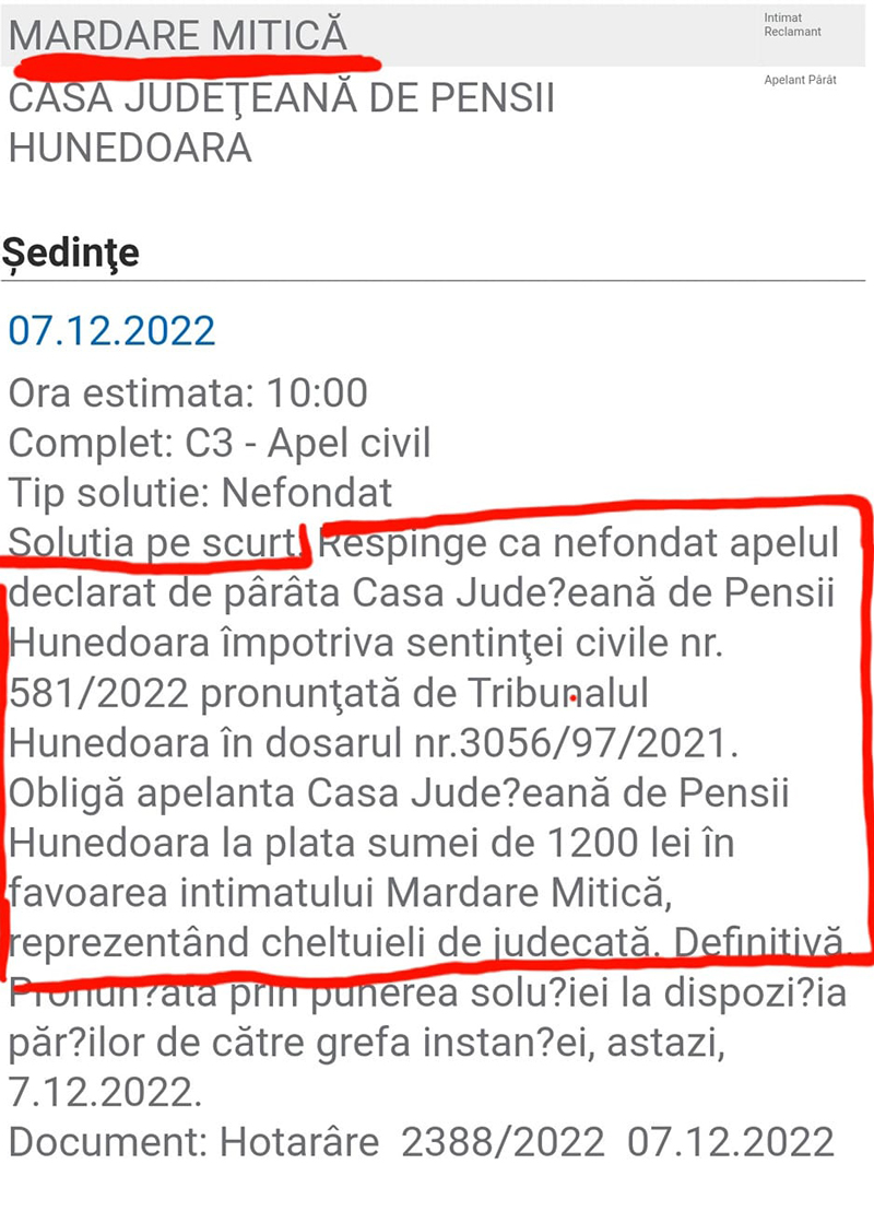 Iată și primul angajat de la Termocentrala Paroșeni, căruia i se recunoaște, ,,DEFINITIV”, pensionarea pe Legea 197/2021! De care beneficiază deja, ca urmare a Hotărârii EXECUTORII, a Tribunalului Hunedoara!!!