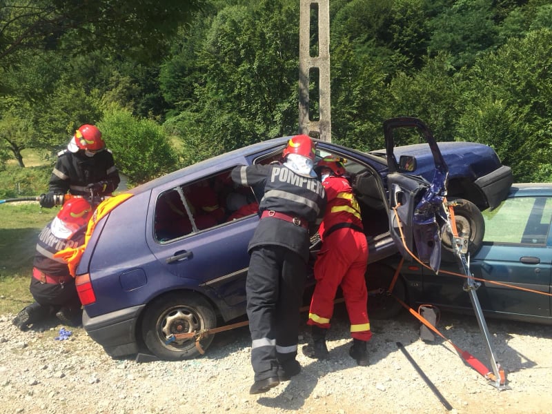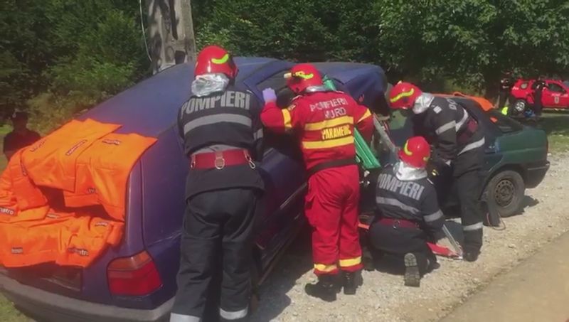 A treia situație operativă specială a vizat gestionarea unei situații de urgență, generată de un accident rutier în care sunt implicate două autovehicule. Conform scenariului, din cauza fumului degajat de incendiu și a vizibilității reduse, un autovehicul pătrunde pe contrasens și lovește un alt autovehicul care se deplasează din sens opus. În urma impactului două persoane rămân încarcerate”, au precizat reprezentanții ISU Gorj, înainte de simulare.