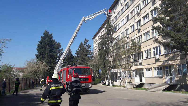 ,,În jurul orei 07.00 am fost solicitați să intervenim pentru stingerea unui incendiu izbucnit la Spitalul 700 din municipiul Târgu-Jiu. Apelul a fost inițiat de către un angajat al spitalului care semnala faptul că incendiul se manifesta la Secția Neurologie destinată pacienților suspecți de infecția cu noul coronavirus. La fața locului s-au deplasat două autospeciale de stingere cu apă si spumă, o autoplatformă pentru lucru la înălțimi, o autospecială pentru transport victime multiple și un echipaj SMURD din cadrul Detașamentului de Pompieri Târgu-Jiu. Echipajele de intervenție au constatat că o lampă de iluminat dintr-o baie situată pe holul secției degaja fum dens. Lampa fusese deconectată de către angajații spitalului care acționaseră cu un stingător pentru stingerea incendiului. S-a efectuat aerisirea încăperii și a holului. Din fericire, nimeni nu a suferit leziuni în urma acestui incident, saloanele în care se află pacienții nu au fost afectate, nu s-a impus evacuarea pacienților sau a personalului medical, iar in prezent activitatea spitalului se desfășoară în condiții normale“, a declarat Florin Chisim, purtătorul de cuvânt al ISU Gorj.