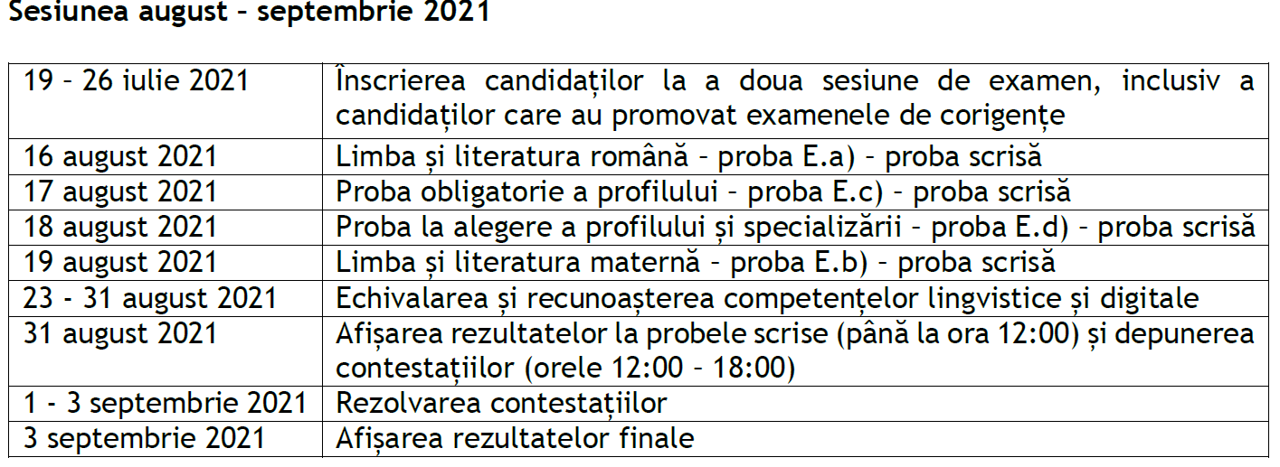 De luni, se dă startul înscrierilor la sesiunea de toamnă a examenului de bacalaureat. Înscrierea candidaţilor se poate face la secretariatele liceelor pe care aceştia le-au absolvit, până pe 26 iulie. Sesiunea de toamnă a examenului de bacalaureat va începe pe 16 august, iar primele rezultate vor fi afișate pe data de 31 august 2021, până la ora 12.00.
