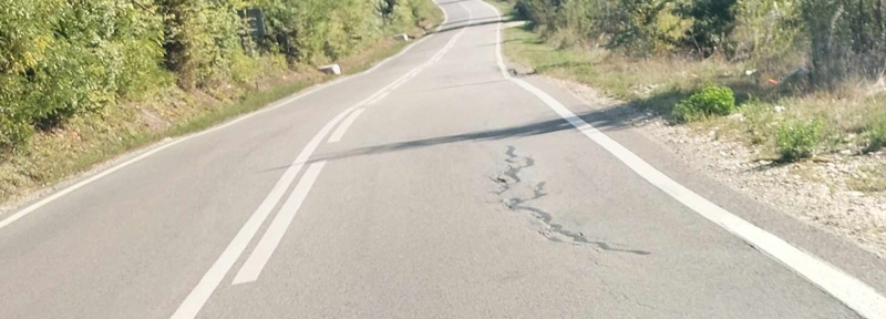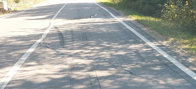 iar drumul arată jalnic, însă în urmă cu circa două luni s-a început peticirea acestuia pe o porțiune de 300 de metri, în pădure la Bârsești.