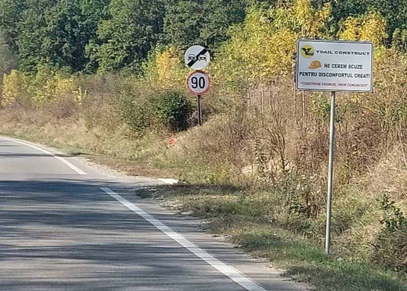 Adică nu există vreo semnalizare a drumului, vreun utilaj sau o minimă organizare de șantier, ci doar două panouri, la ieșirea din Tg-Jiu și la intrare în Lelești, vechi de când se lucra la poduri și podețe, în care constructorul Ydail Construct își cere scuze pentru disconfortul creat.