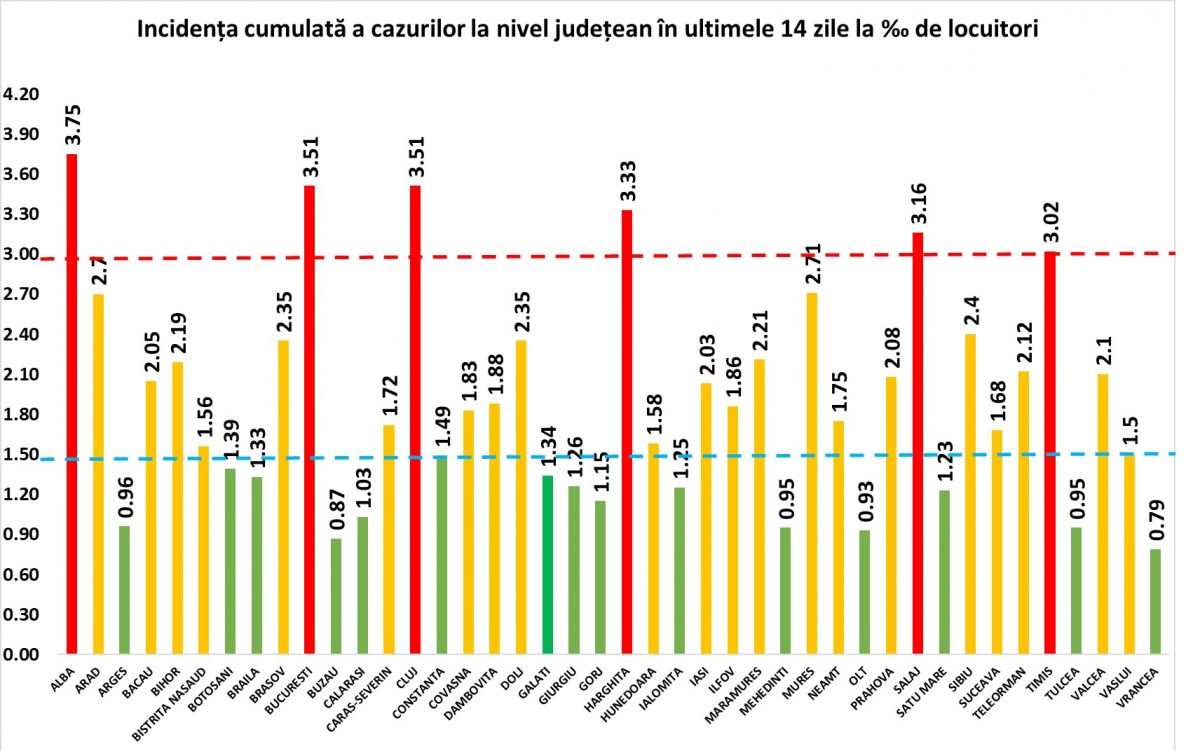 Grupul de Comunicare Strategică a transmis astăzi, 26 octombrie, situația incidenței cazurilor COVID19 pe județe, actualizată.