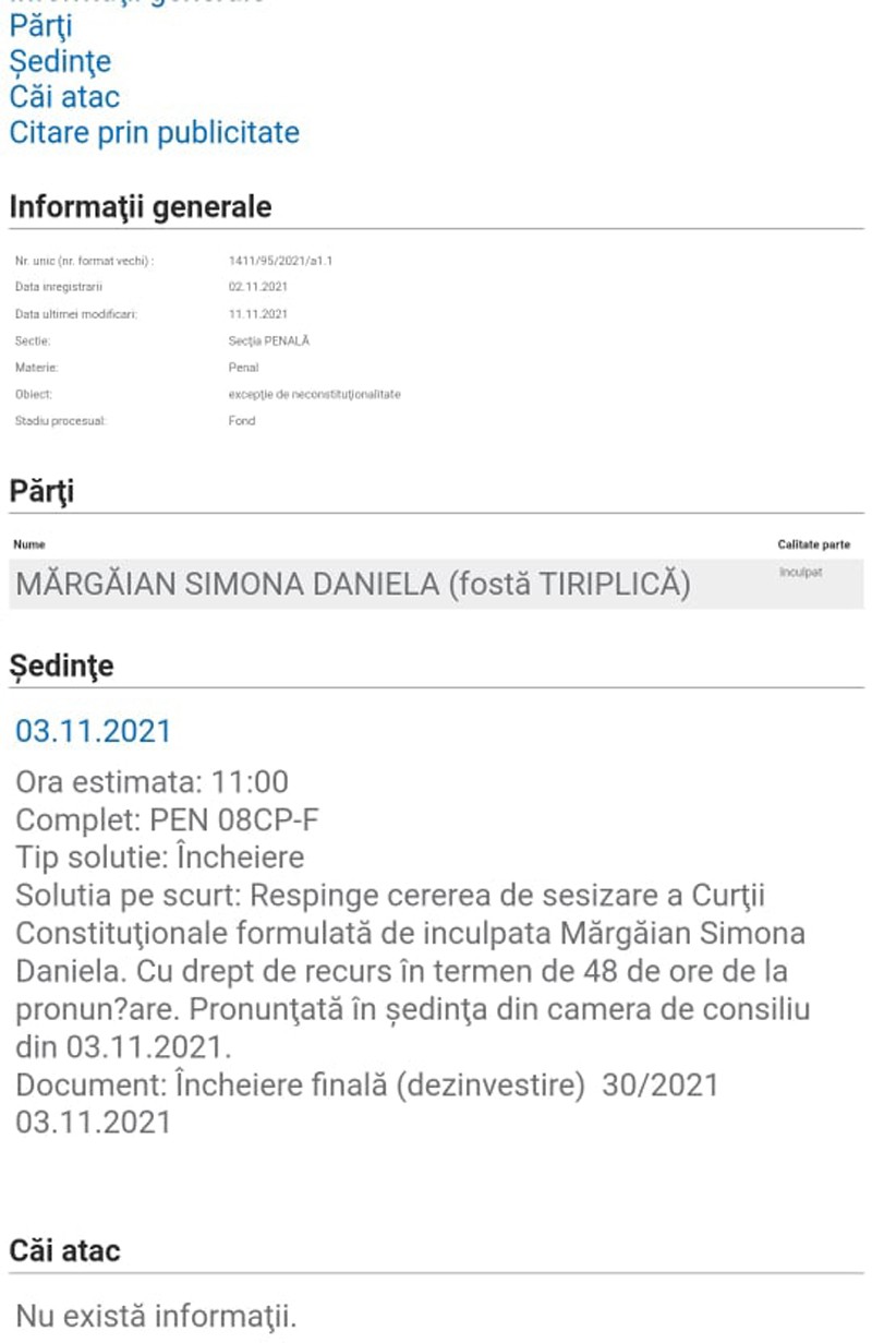 Inculpata Simona Mărgăian a vrut să sesizeze Curtea Constituțională! Instanța Tribunalului Gorj a respins cererea