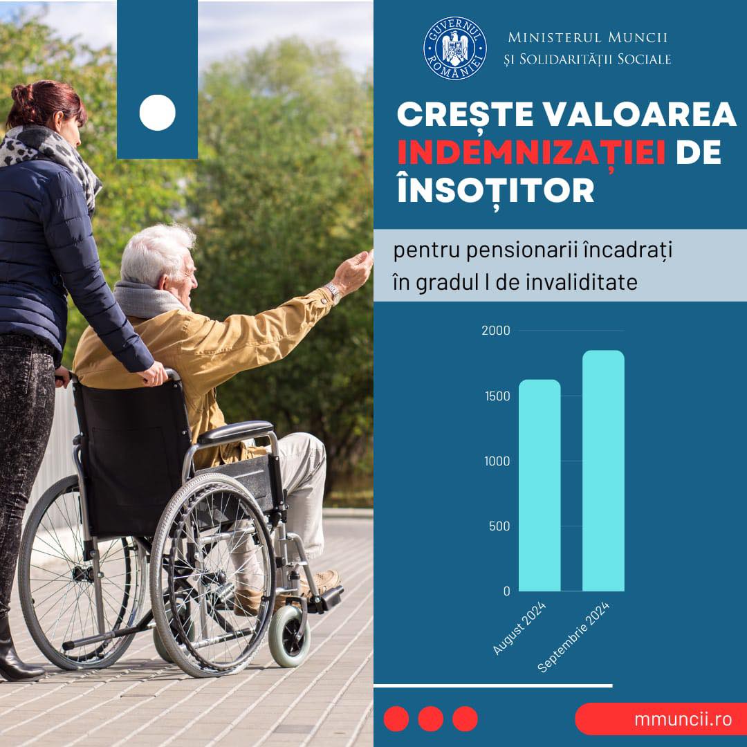 Drept urmare, indemnizația de însoțitor crește cu 224 de lei de la 1 septembrie 2024.