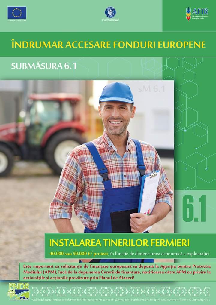 În vederea pregătirii lansării sesiunilor de primire a cererilor de finanţare, Agenţia pentru Finanţarea Investiţiilor Rurale a realizat, în premieră, două îndrumare pentru accesarea fondurilor europene dedicate submăsurilor 6.1 „Sprijin pentru instalarea tinerilor fermieri” şi 6.3 „Sprijin pentru dezvoltarea fermelor mici”, finanţate prin Programul Naţional de Dezvoltare Rurală 2014 – 2020 (PNDR 2020).