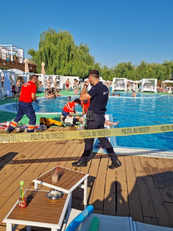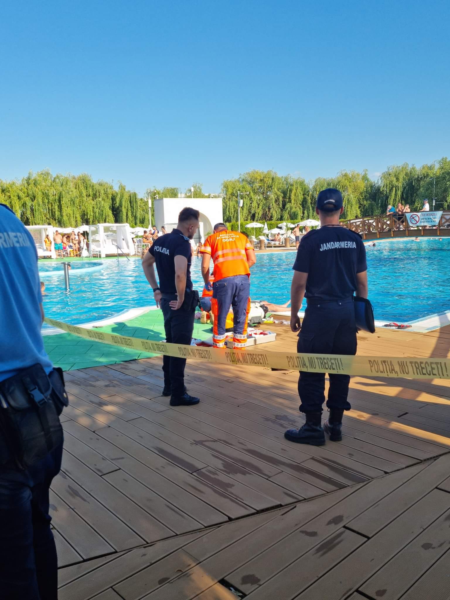 Cert este că i se fac manevre de resuscitare, două ambulanțe ajungând la fața locului. Doua echipaje de politie sunt in incinta unității de agrement.