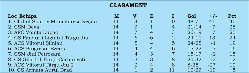 ACS Viitorul Târgu Jiu 2 0 – 8 Clubul Sportiv Muncitoresc Reșița