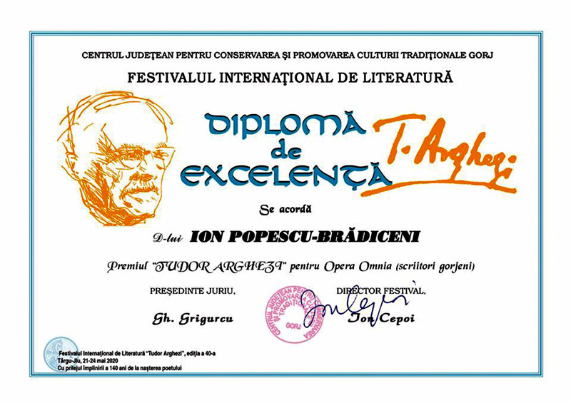 Din ce în ce mai sigur pe instrumentele sale, un veritabil „om-peniţă” (sintagma îi aparţine lui Flaubert!), ne apare poetul Ion Popescu-Brădiceni în „Serile la Brădiceni”. Aceeaşi mai veche tentă orfică intersectându-se când cu melancolia, în frumoase poeme neoromantice, potenţează căutarea „toposului”, a centrului simbolic (Mircea Eliade), conturând un spaţiu literar propriu, străfulgerat de imaginea Brădicenilor şi a serilor „là-bas”. L-am pus pe acolo în franceză, gândindu-mă la Baudelaire care căuta acest spaţiu într-o zonă exotică sau „anywhere out of the world”…