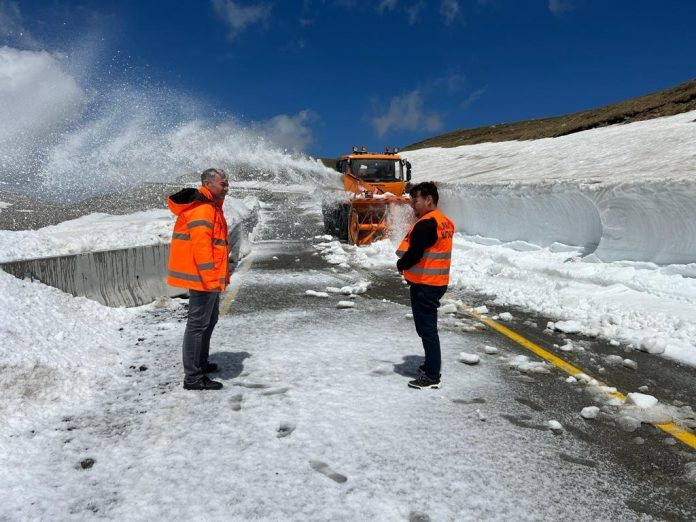 În paralel cu activitatea de deszăpezire se lucrează și la montarea semnalizării verticale și la verificarea parapetelui de protecție.