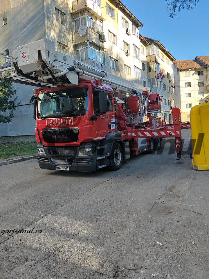 Municipiului Târgu-Jiu au apelat la ajutorul pompierilor pentru îndepărtarea unei părți metalice de pe acoperișul unui bloc, deoarece aceasta reprezenta un pericol pentru cetățenii din zonă. Astfel, ieri dimineață, o autospecială pentru lucru la înălțime aparținând Inspectoratului pentru Situații de Urgență (ISU) al județului Gorj s-a deplasat la fața locului, iar pericolul a fost eliminat.