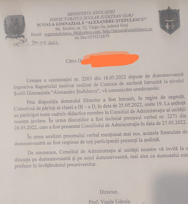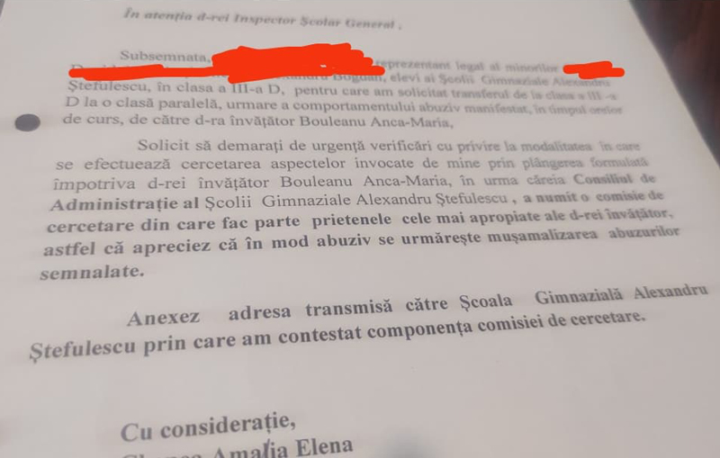 Între timp și aparținătorii elevilor respectivi se adresează cu sesizări scrise Inspectoratului