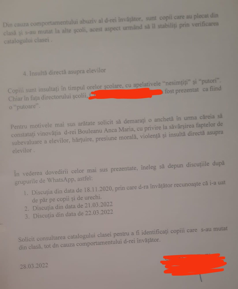 * Mama elevilor: ,,Ajung până la ministrul Educației! Nu se poate să mușamalizezi, în asemenea hal, așa ceva”!
