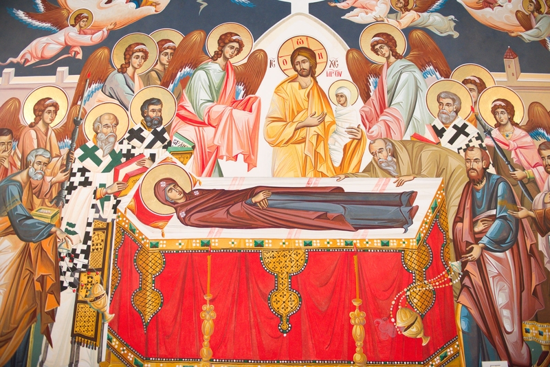 Pentru că suntem la o săptămână după Praznicul «Adormirii Maicii Domnului», iubiţi părinţi şi fraţi creştini, tot ceea ce se descoperă despre aflarea giulgiurilor de îngropare a Maicii Domnului şi despre al ei mormânt plin de faimă, iată ceea ce se scrie cuvânt de cuvânt în «Istoria eftimiană», cartea III, capitolul 40 al cărţii: ,,S-a zis mai sus cum cea între sfinţi Pulheria a ridicat în Constantinopol numeroase biserici lui Hristos, iar, una dintre ele a fost zidită la Vlaherne, la începutul împărăţiei lui Marcian (450-457) de fericită pomenire! Aceştia au construit (450-453) aici o casă de cinstire prealăudatei şi preasfintei Maici a lui Dumnezeu şi Pururea-Fecioarei Maria şi împodobind-o cu toată podoaba, căutau preasfântul şi de-Dumnezeu-primitorul ei trup. Chemându-l pe arhiepiscopul Ierusalimului, Iuvenalie (422-458), şi episcopii din Palestina care se aflau atunci în Cetatea împărătească din pricina Sinodului ţinut atunci la Chalcedon (451), le-au spus: «Am auzit că la Ierusalim este prima biserică a preasfintei Maicii lui Dumnezeu şi Pururea-Fecioarei Maria, în locul numit Gheţimani unde, de-viaţă-purtătorul ei trup a fost aşezat într-o raclă (soros). Or, noi vrem ca această relicvă să o aducem aici spre paza acestei Cetăţi împărăteşti»”. Deci, luând cuvântul, Iuvenalie a zis: ,,În Sfânta şi de-Dumnezeu-insuflata Scriptură nu se relatează cele petrecute la săvârşirea sfintei Născătoare de Dumnezeu Maria, dar dintr-o predanie străveche şi foarte adevărată ştim că în vremea slăvitei ei adormiri, toţi Sfinţii Apostoli care străbăteau pământul spre mântuirea neamurilor au fost adunaţi într-o clipită pe sus la Ierusalim; şi când au fost lângă ea, li s-a arătat o vedenie îngerească şi s-a auzit o dumnezeiască imnodie a puterilor de sus; şi aşa, într-o slavă dumnezeiască şi cerească şi-a pus ea în mâinile lui Dumnezeu sfântul ei suflet în chip negrăit! Iar trupul său de-Dumnezeu-primitor a fost dus şi îngropat în cântări ale îngerilor şi apostolilor şi aşezat într-o raclă în Gheţimani, loc în care timp de trei zile corurile şi imnele îngereşti au stăruit neîncetat. Aşadar, după cea de-a treia zi, încetând cântarea îngerească, apostolii de faţă au