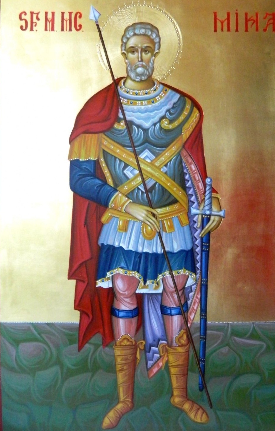 În ziua de 11 noiembrie, cu toţi îl sărbătorim pe Sfântul Mare Mucenic Mina, supranumit «Făcătorul de Minuni», deoarece a intervenit în nenumărate situații și i-a ajutat pe cei aflați la necaz sau care i-au cerut ajutorul, mai ales că această zi nu este nu este marcată cu cruce roșie în calendarul ortodox, deși este una dintre cele mai iubite întruchpări ale sfinţeniei, mai ales în România. Sfântul Mina s-a născut în apropiere de Memphis (capitala faraonilor), având origini egiptene şi a trăit pe vremea împăraților romani Dioclețian si Maximian. A rămas orfan pe când era doar un copil, pentru că tatăl său a murit când el avea 11 ani, iar mama sa a murit trei ani mai târziu. Tatăl său se numea Eudoxie şi era fiul guvernatorului Pludianes. Deşi era fiu de guvernator, Eudoxie era cunoscut pentru virtutea şi bunătatea sa. Mama Sfântului Mina se numea Eufimia, o femeie credincioasă care-şi petrecea timpul în rugăciune şi în fapte bune! Era, însă, stearpă, şi de aceea se ruga adesea cu multă osârdie pentru naşterea unui fiu, iar, cu ochii plini de lacrimi s-a rugat mai stăruitor să aibă măcar un copil şi ajungând în faţa icoanei Maicii Domnului, şi continuându-şi cu umilinţă rugăciunea pentru naşterea de fii, a auzit vocea Pruncului Iisus spunând: „Amin”! Astfel, Dumnezeu a împlinit rugăciunea şi aşa s-a născut pruncul în anul 285, primind numele de Mina. Deși nu este un sfânt marcat cu cruce roșie, în calendarul ortodox, este un sfânt mult iubit de către români. Ca atare, în ziua praznicului său, la 11 noiembrie, mii de oameni vin să se închine sfântului Mina, la biserica cu același nume, din București, din evlavie sau pentru a „recupera” ceva: un obiect pierdut, o sumă de bani sau alte bunuri materiale. Această tradiție s-a născut în urma unei minuni pe care, conform Tradiției, Sfântul Mina a înfăptuit-o, deoarece, se spune că, mergând un creștin spre biserica Sfântului Mina spre a se închina, a fost găzduit într-o casă oarecare. Din păcate, în timpul nopții, stăpânul acelei case l-a ucis pe creștin, pentru a îi lua banii. Tăindu-l în bucăți, l-a ascuns într-un cufăr. A doua zi, pe când se gândea ce să facă cu acel cufăr, Sfântul Mina, călare pe un cal, i-a apărut acelui om, în chip de ostaș, cercetând ce s-a întâmplat cu cel ce se cazase acolo, cu o noapte înainte. Prefăcându-se că nu știe nimic, criminalul a căzut la picioare sfântului, atunci când acesta s-a dus la locul în care creștinul era ascuns și l-a înviat. Atunci, Sf. Mina i-a înapoiat acestuia banii, pe gazdă a pedepsit-o, a iertat-o, a înălțat rugăciune pentru ea și a dispărut. Pe baza acestei istorioare, oamenii îl cunosc pe Sf. Mina ca pe un „recuperator”, însă Sf. Mina nu este „directorul” unei firme miraculoase de recuperări, ci, Sfântul Mina este un făcător de dreptate. Începând din anul 1874, în biserica «Sfântul Mucenic Mina» din București sunt păstrate fragmente din moaștele Sfântului Mina, aduse de la Sf. Munte Athos și de la Mănăstirea «Sfântul Mina» din Egipt. Se ştie că Sfântul Mina a renunțat la haina de ostaș și a imbrăcat veșmântul pustincului. El a ajuns în armata imperială, însă ulterior, pe 23 februarie 303, pe când Dioclețian a dat ordinul persecutării creștinilor, a hotărât să părăsească armata și să se retragă în deșert, dedicându-i întreaga sa existență lui Dumnezeu. În scurt timp, acesta a primit puterea de a face minuni! În vremea petrecută în pustiu, Sfântul Mina l-a întâlnit pe Sfântul Macarie Egipteanul, care i-a spus: „Ce cauţi Mina, de unul singur, între cer şi pământ? Locul tău este printre oameni, ca aceştia să ia aminte la