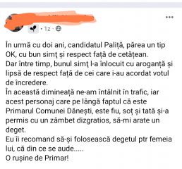 Reamintim că o salariată de la Registrul Agricol din cadrul Primăriei Târgu Jiu a reclamat la 112 că edilul de Dănești, Mădălin Paliță, ar fi agresat fizic și verbal și i-a adresat amenințări salariatei UAT Târgu Jiu, de loc din Dănești.