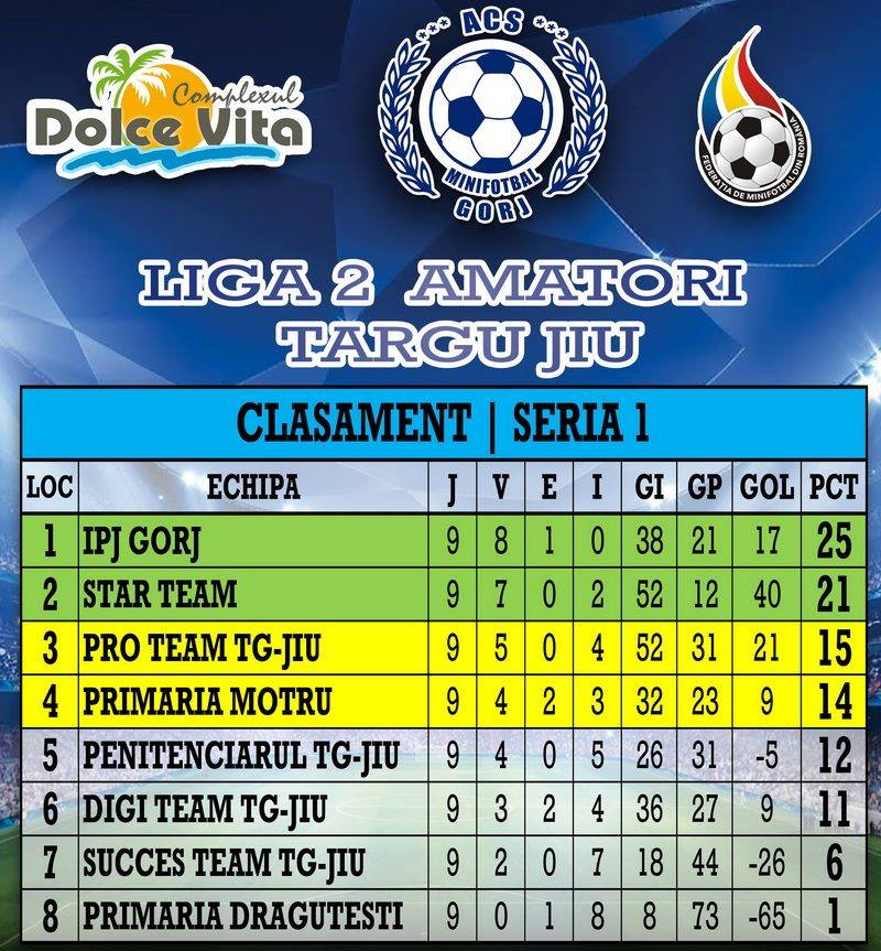 Campioana IPJ Gorj a câștigat derby-ul etapei a noua din Liga 2 Amatori la minifotbal. Victoria cu Star Team, scor 4-1, le asigură în mare măsură celor de la IPJ Gorj, calificarea în faza de Play-off a campionatului.