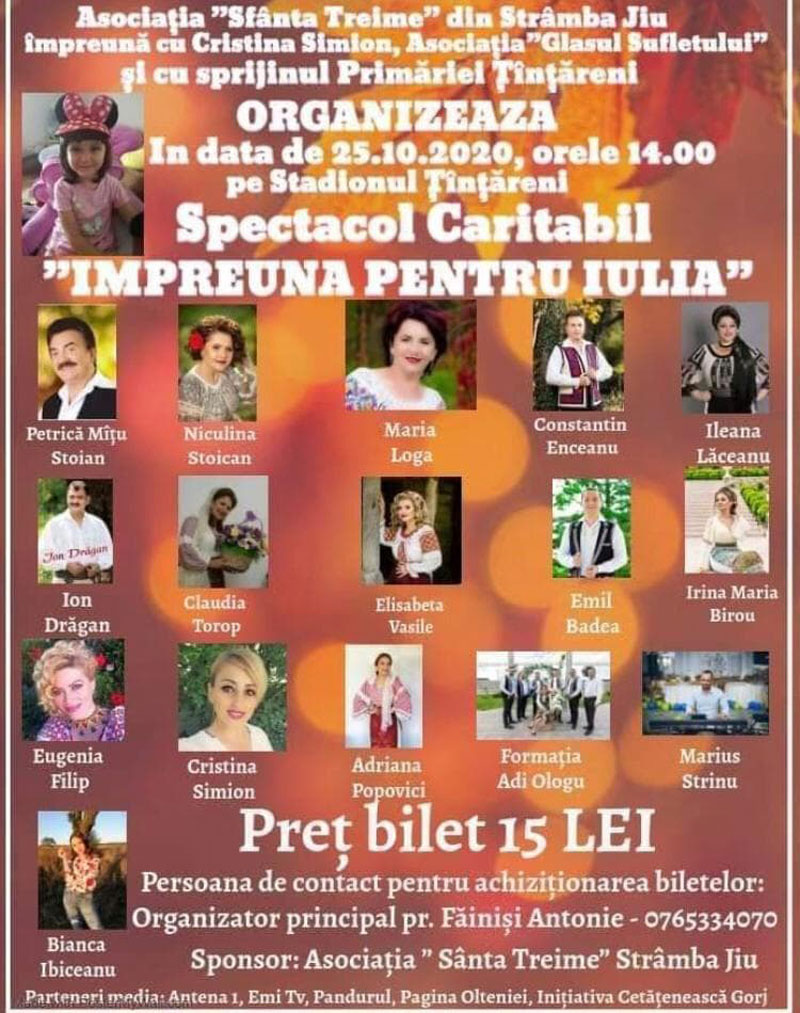 * Concert caritabil pentru fetița bolnavă, pe 25 octombrie