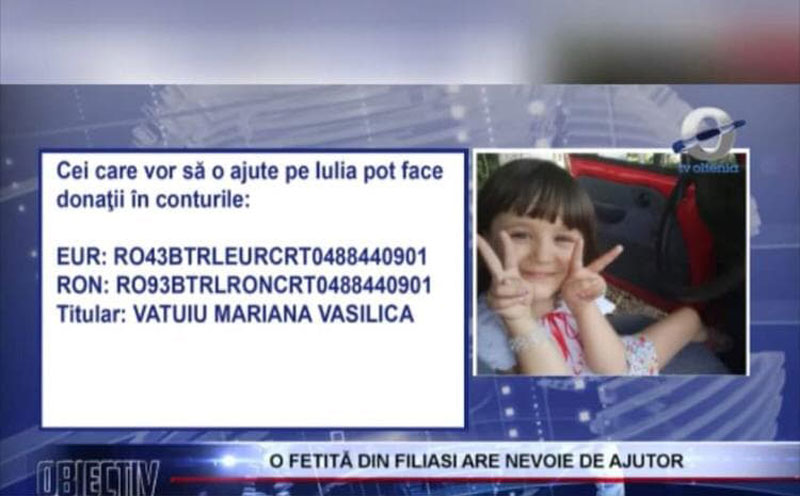 * Fiecare donație contează în lupta contra cronometru pentru salvarea Iuliei
