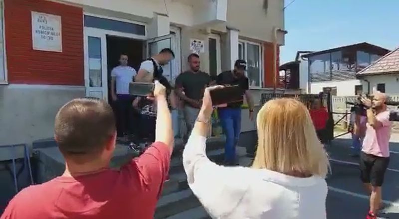 Iubita unuia dintre cei trei tineri auzați că, în noaptea de miercuri spre joi, au spart o casă de pariuri din Târgu-Jiu și ar fi furat 16.000 de lei din seif, l-a sărutat, ieri, în momentul în care a ieșit din sediul Poliției municipiului Târgu-Jiu. Mai mult, femeia i-a transmis: ,,te iubesc, iubire!”.