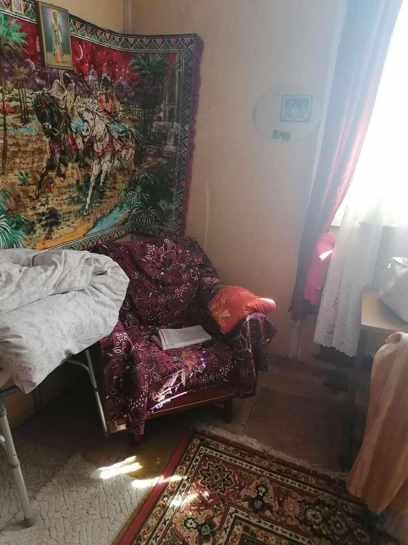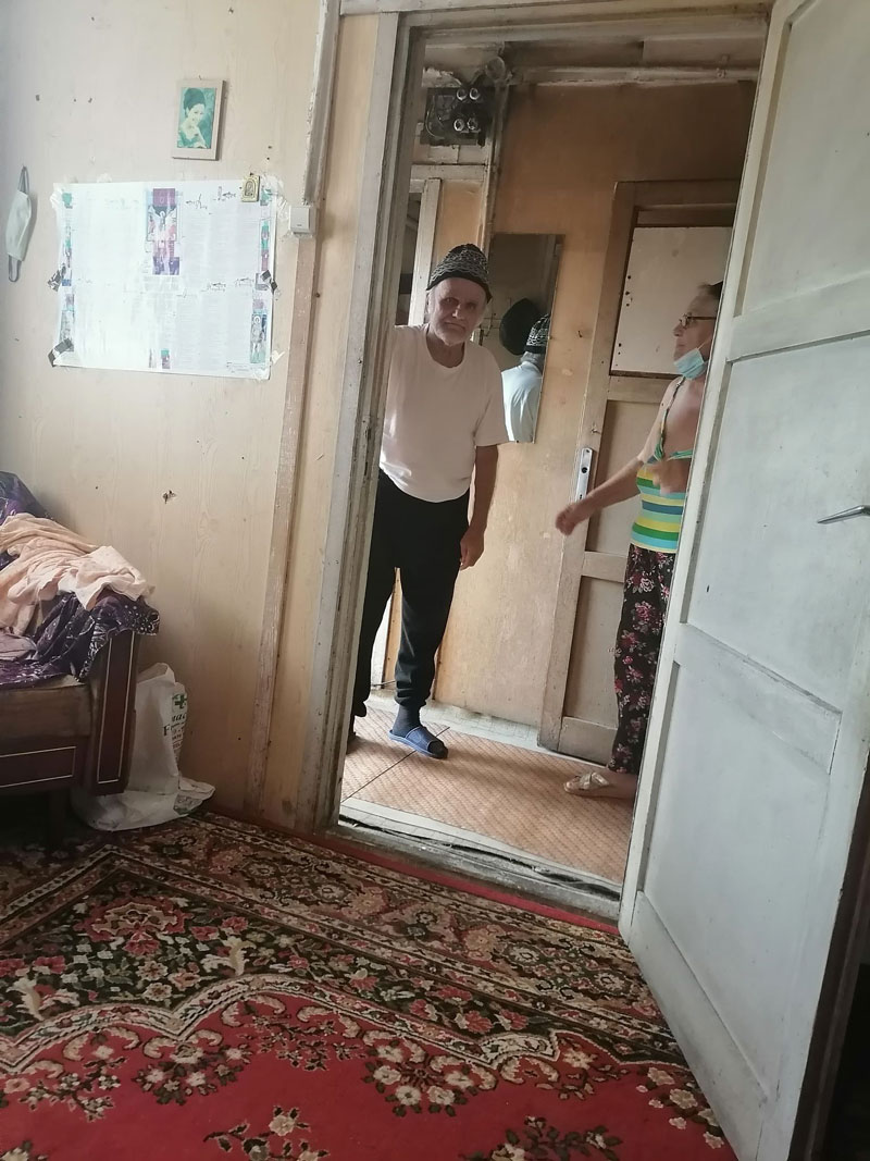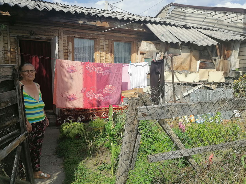 Cea care a apărut la ușă, după ce un vecin mi-a indicat locuința sărăcăcioasă, a fost Tatiana Aldea, căreia nu îi venea să creadă că i-am respectat cererea și am venit să o vizitez. A scos rapid o mască și și-a acoperit gura, în timp ce mă poftea să îi trec pragul casei sale sărăcăcioase. În tot timpul acesta vorbea: ,,Știți, soțul meu este acolo în pat. E bolnav. Are demență. Pleacă singur, face pe el. Abia mă mai descurc. Numai pentru scutecele lui dau 70 de lei pe lună. Nu mai știu ce să mă fac. Mi-a venit și factura la curent 200 de lei. Credeți că mă poate ajuta cineva?”.