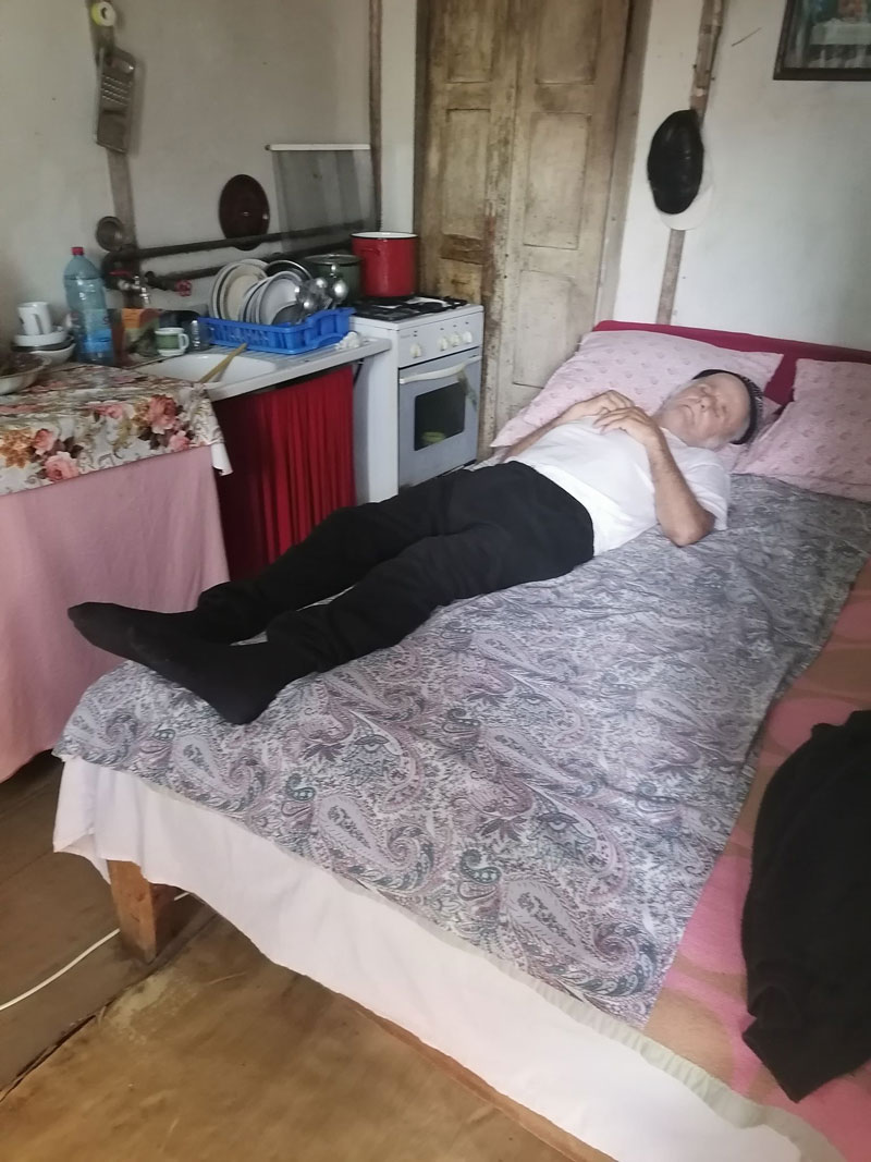 Mi le-a arătat, în timp ce își frângea mâinile. Apoi l-a ridicat pe bărbatul de 73 de ani din pat. ,,Hai să te vadă doamna…”, îi spune partenerului de viață, care s-a proptit în ușă în timp ce mă privea zâmbind.