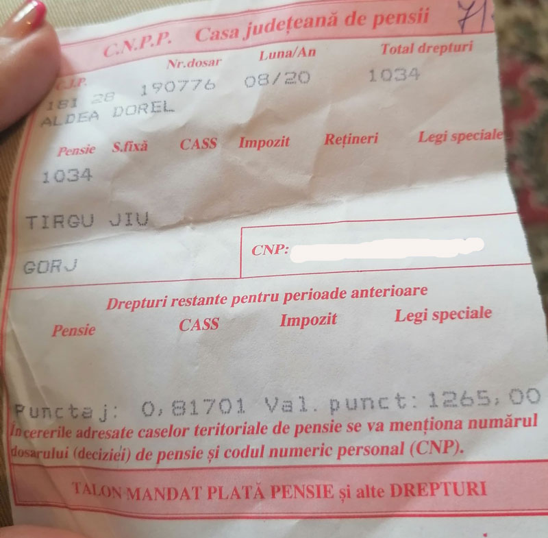 ,,Poate totuși un ONG, vreo asociație ceva ne ajută! Nu, doamnă? Că eu nu mai pot, trăim cu 1000 de lei pe lună. 120 de lei e chiria la Edilitara, apoi medicamentele, utilitățile, mâncarea. Nu are cine ne ajuta. Fiul are și el treburile lui, familia lui, eu nu sunt însoțitor că nu îl pot interna pe soț la Neurologie. Credeți-mă că am ajuns la capătul răbdării”, a completat Tatiana Aldea, invitându-mă să stau pe marginea unui pat, în timp ce căuta agitată un cupon de pensie și ultima factură la curent.